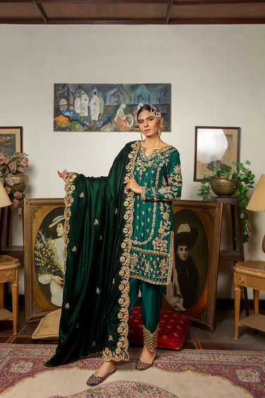 A fully embellished Meera shawl with floral motives and a naqshi dabka stone  Swarovski at the hem, enhanced with intricate hand work and adorned with pearls and crystals. It is beautiful look.